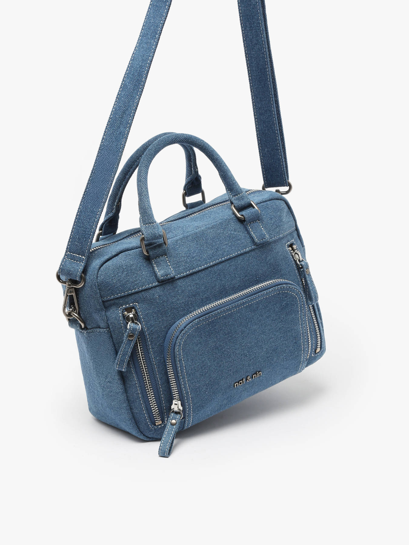 Le sac bandoulière NAT ET NIN en coton offre une combinaison parfaite de praticité et de style. À l’extérieur, il dispose de trois poches avant et d'une poche au dos, permettant un accès rapide à vos objets essentiels. Sa fermeture zippée garantit la sécurité de vos affaires. La bandoulière réglable et amovible permet de le porter à la main ou en bandoulière, selon vos préférences. À l’intérieur, un compartiment spacieux, une poche simple et une poche éclair assurent une organisation optimale. Un accessoire élégant et fonctionnel, idéal pour le quotidien.