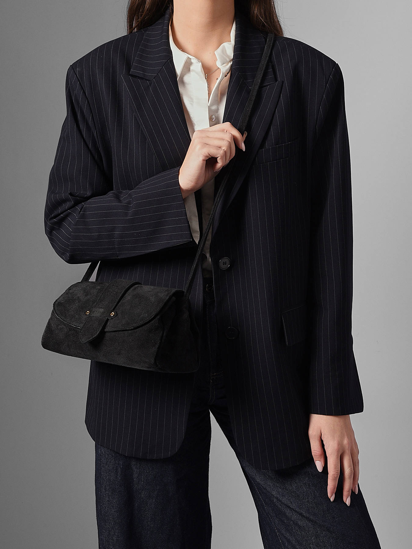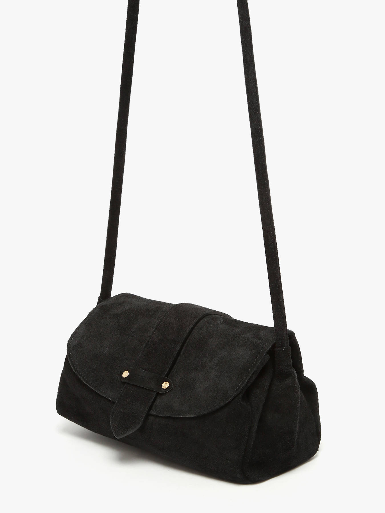 Le sac porté bandoulière AGNES par ETRIER est conçu en cuir velours italien, offrant une texture douce et raffinée. Ce modèle est présenté ici en taille M et se ferme par un rabat doté d'un bouton-pression aimanté. Il existe également en taille S pour celles et ceux qui préfèrent un format plus compact. Le sac est agrémenté d'une languette réversible, composée d'une face dorée et d'une face en cuir assortie au reste du sac. Elle se fixe aisément grâce à deux boutons de col et se glisse dans une poche arrière prévue à cet effet.