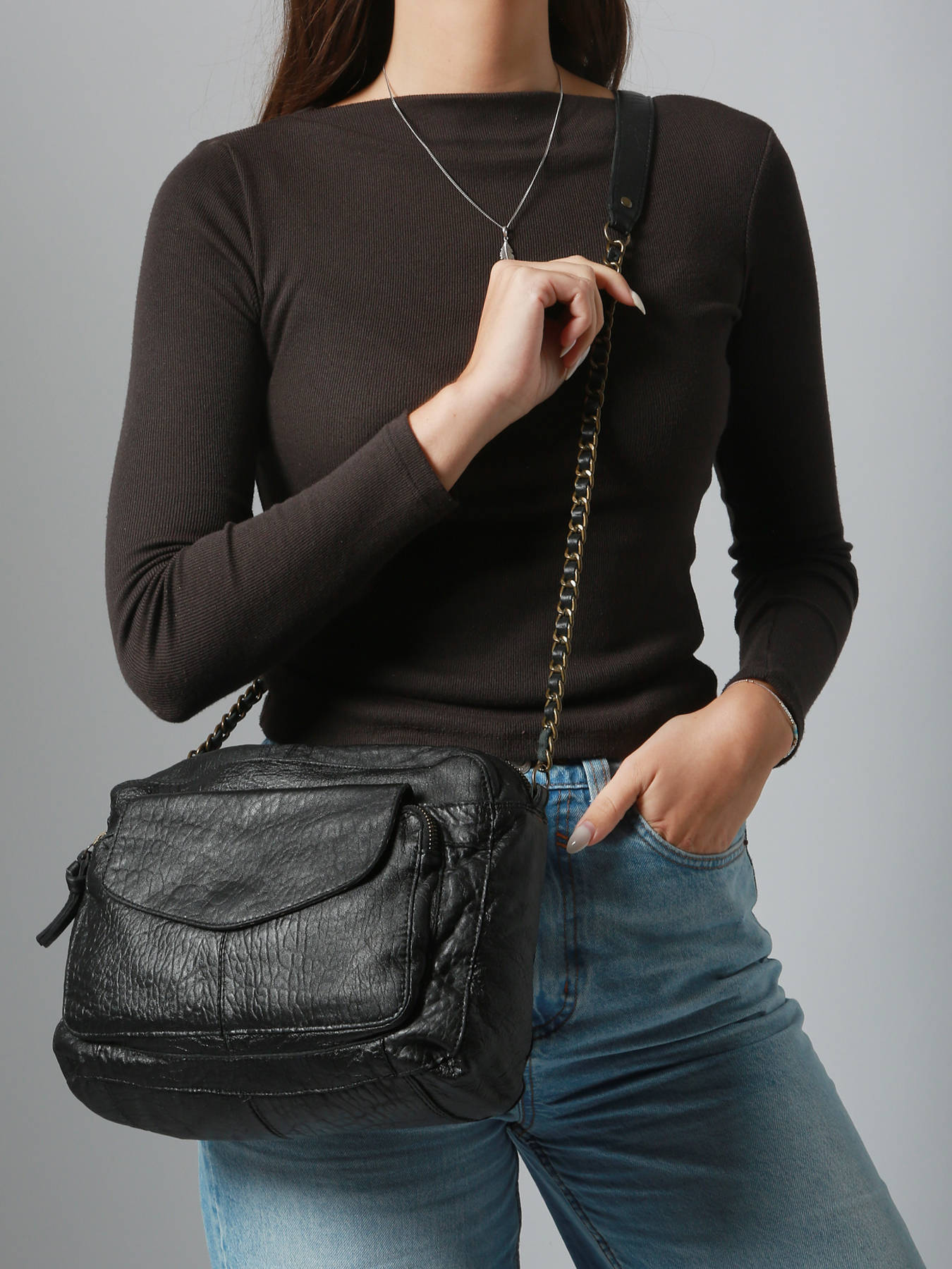 Un cuir d’une très belle qualité et un design authentique, ce sac bandoulière signé Pièces est l’accessoire qu’il vous faut. Il se porte à l’épaule ou croisé grâce à sa bandoulière réglable en chaîne mêlée de cuir et font de lui un irrésistible. Issu de la ligne Naina, cet indispensable au style casual dispose d’un compartiment, de deux poches simples et de deux poches éclair. Portez-le au quotidien avec une tenue classique.